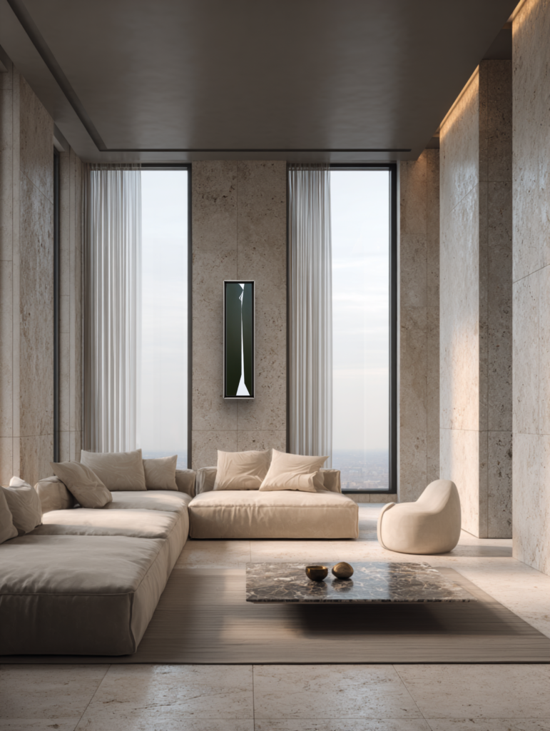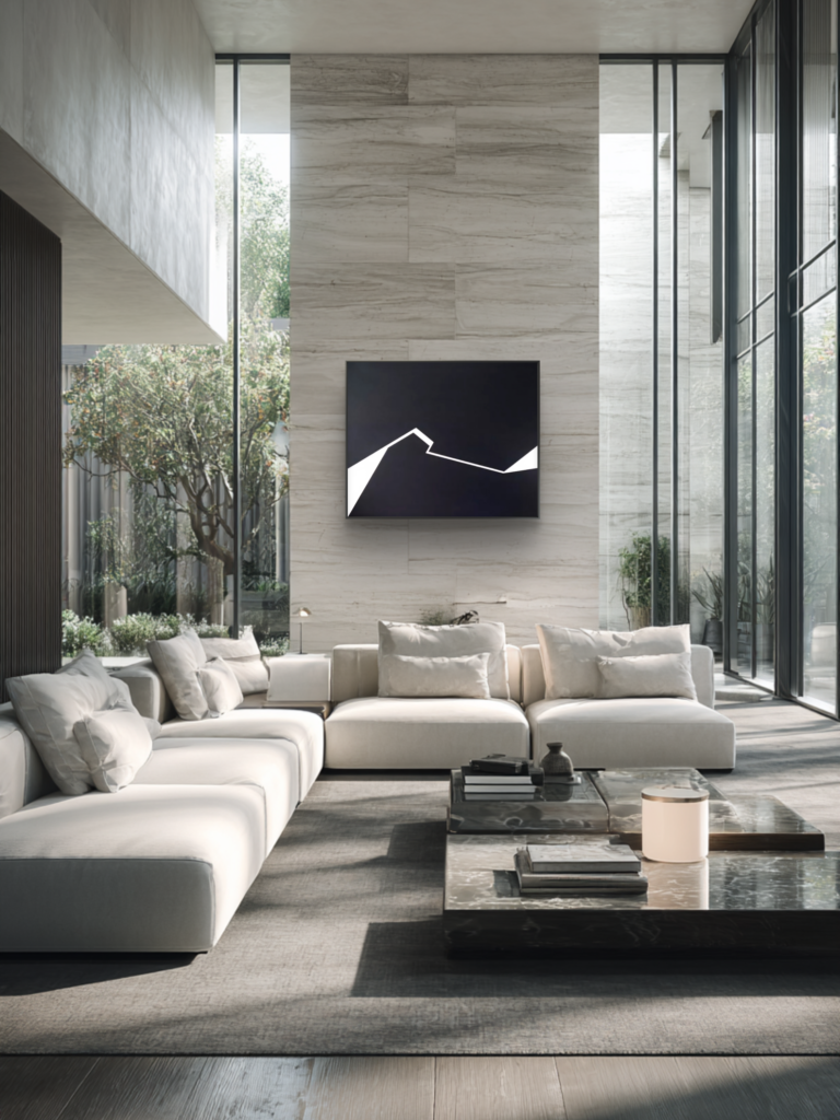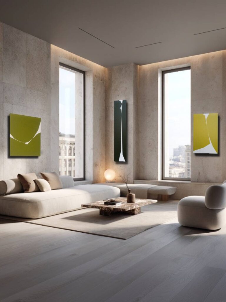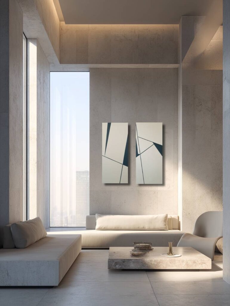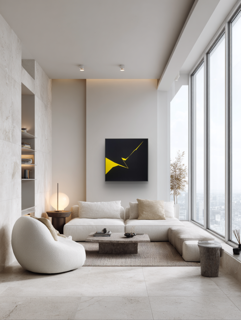 Art in interiors Selected works shown within contemporary interiors, demonstrating scale, proportion, and interaction with space.